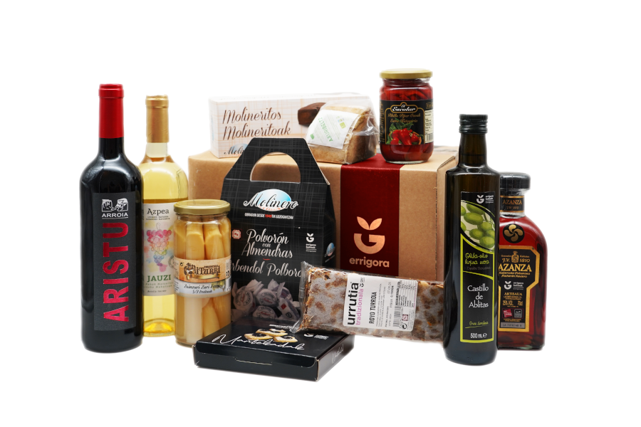 PRODUKTU GUZTIAK EDUKIA: Ardo beltza (18 hil barrikan) · Ardo txuria · Olioa · Piperrak · Zainzuriak · Turroia · Mantekadak · Polboroiak · Ardi-gazta · Txokolatezko molineritoak · Patxarana 75€ 75€ ESKATU